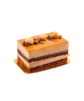 Decadent Belgian chocolate sponge layered with caramel cream, finished with a smooth chocolate glaze for a luxurious bite.